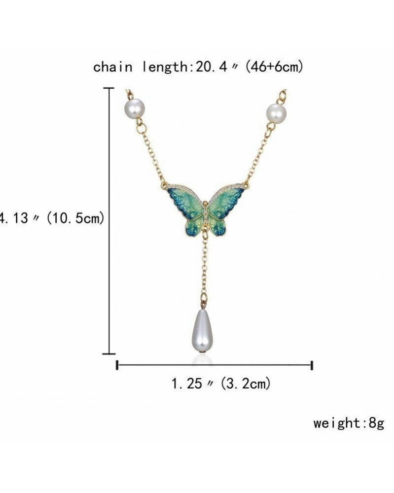Kék Pillangó - Női hölgy kristály strassz gyöngy pillangó medál nyaklánc báj ékszerek
