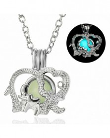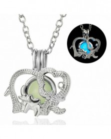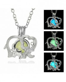 Sárga zöld elefánt - Divatos üreges állati szív világító medál nyakláncok világítanak a sötét ékszerekben