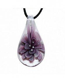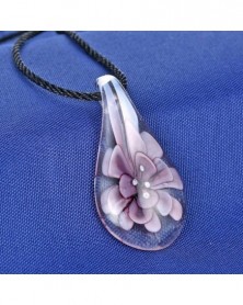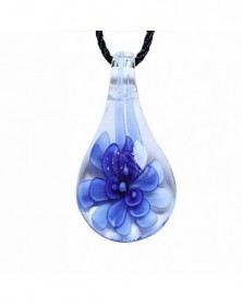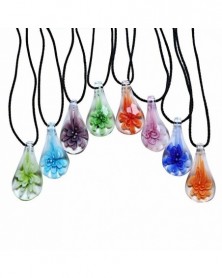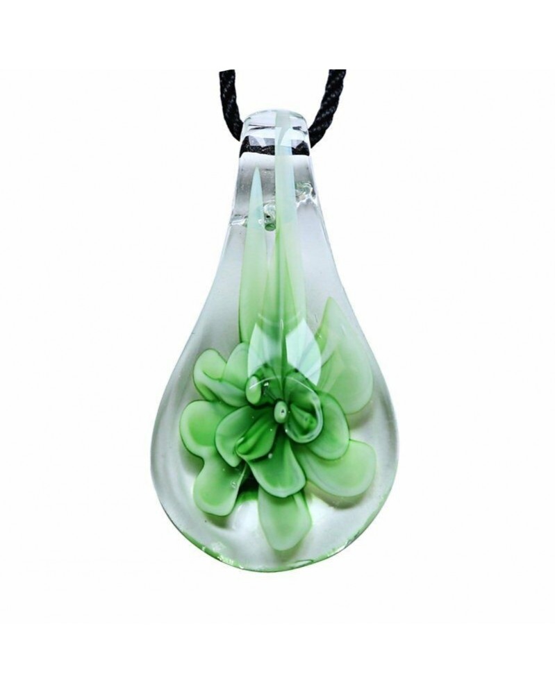 Sötétzöld - Retro virág Murano Lampwork üveg medál nyaklánc bőr női ékszer ajándék