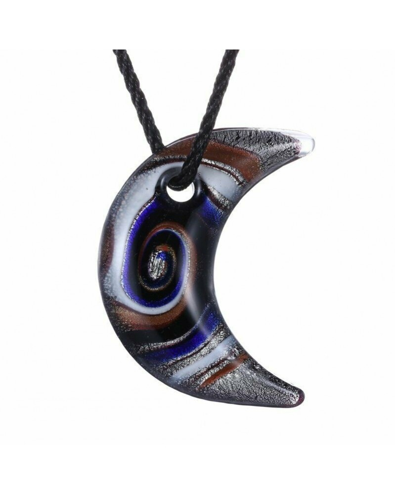 Fekete Hold - Divat női kézműves lámpa Murano üveg szív virág medál nyaklánc