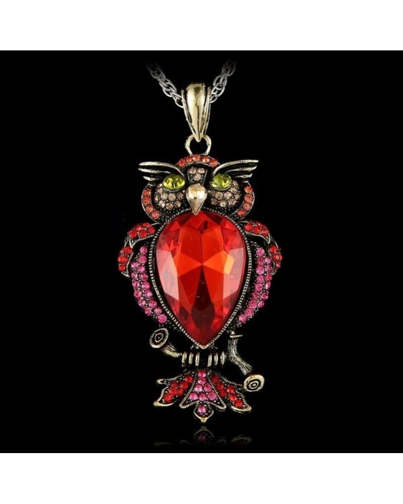 * 15-Vörös kristály bagoly - Retro női Crytal Butterfly Horse medál nyaklánc pulóver lánc ékszer ajándék