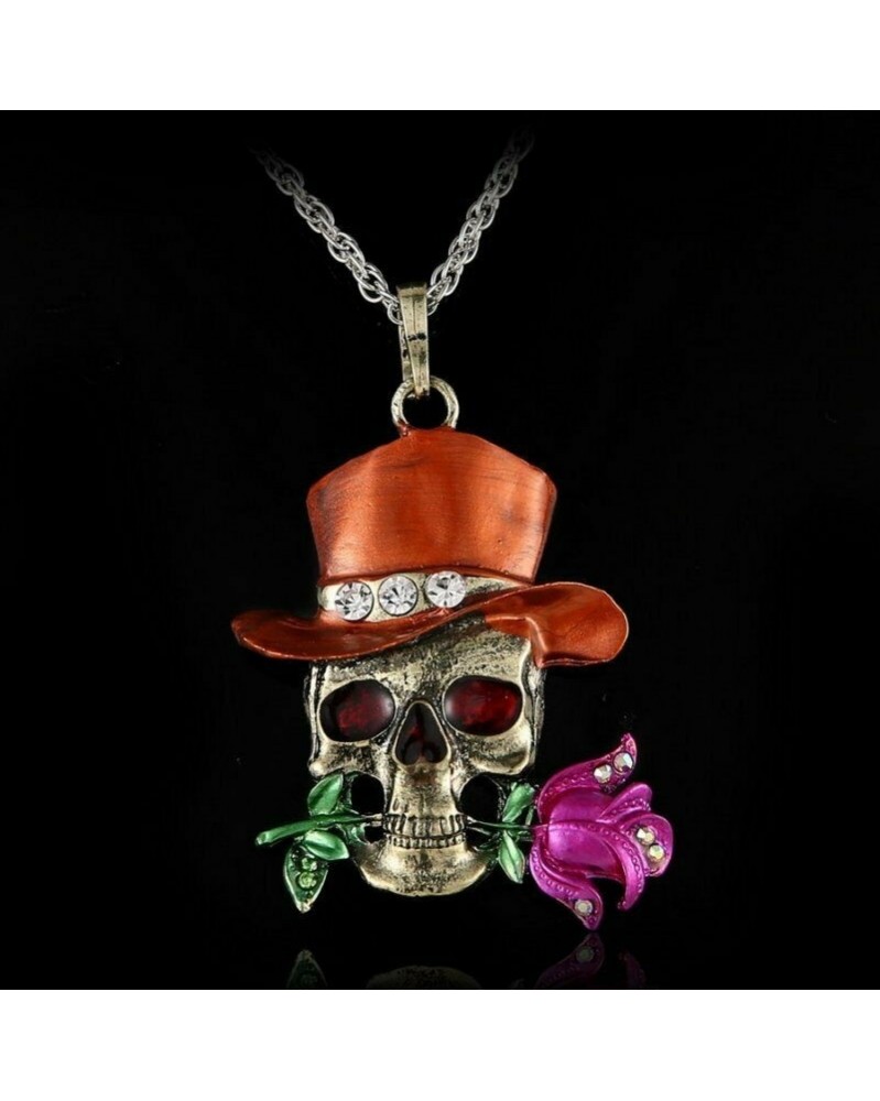 * 16-Világosbarna koponya - Retro női Crytal Butterfly Horse medál nyaklánc pulóver lánc ékszer ajándék