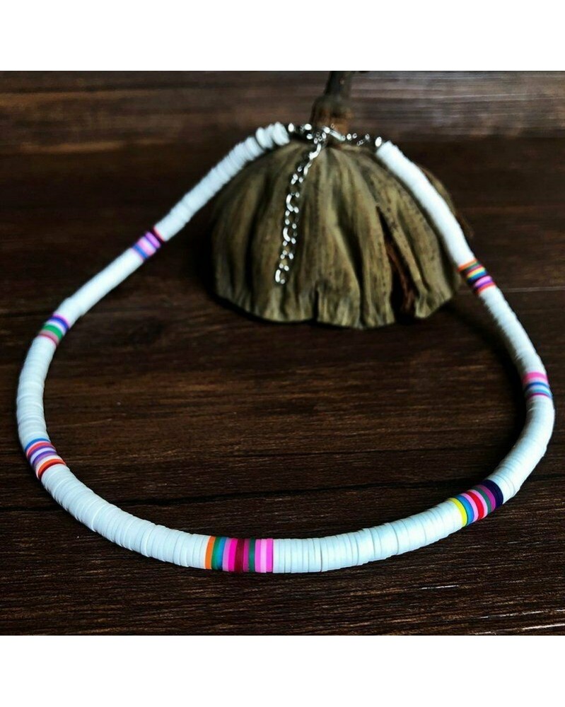 fehér - Boho Polymer Clay Choker nyaklánc kézzel készített színes kulcscsont női női ékszer ajándék
