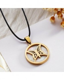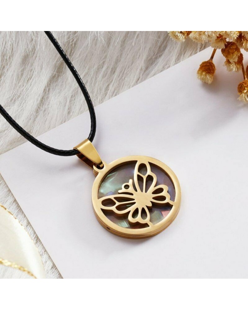 Báj pillangó - Kerek arany rozsdamentes acél héjú állat medál bőr lánc nyaklánc női férfiak