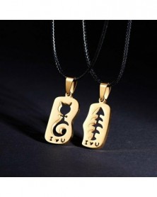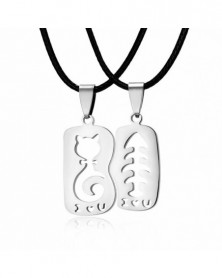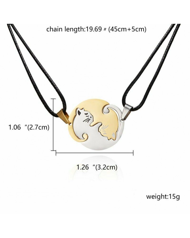 Ezüst arany macskák - 2db Kedves macska rozsdamentes acél medál nyaklánc bőr lánc pár ékszerei