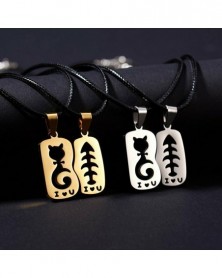 Arany Szeretlek macska halcsontok - 2db Kedves macska rozsdamentes acél medál nyaklánc bőr lánc pár ékszerei