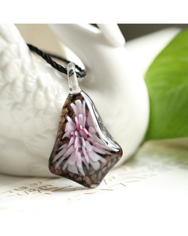 30 Rózsaszín virág - Női virág levél minta lámpa üveg Murano medál nyaklánc báj ékszerek