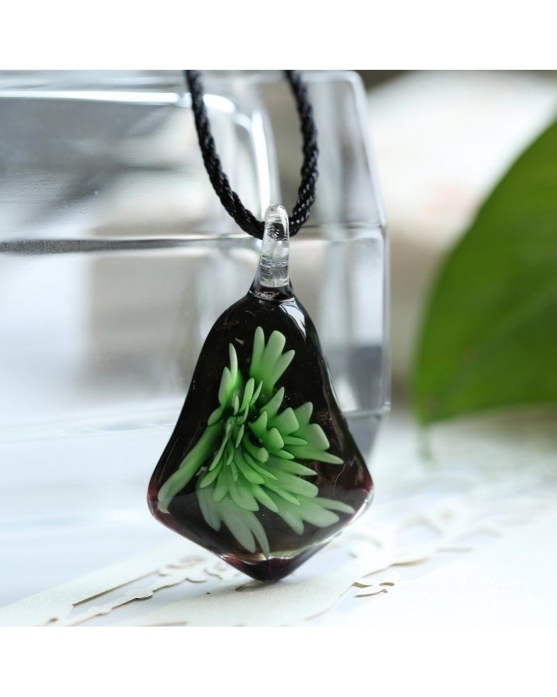 35 Zöld virág - Női virág levél minta lámpa üveg Murano medál nyaklánc báj ékszerek