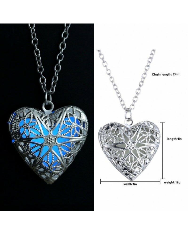 Üreges szívkék - Világító Steampunk Magic Rózsa virág Locket fénylik a sötét medál nyaklánc