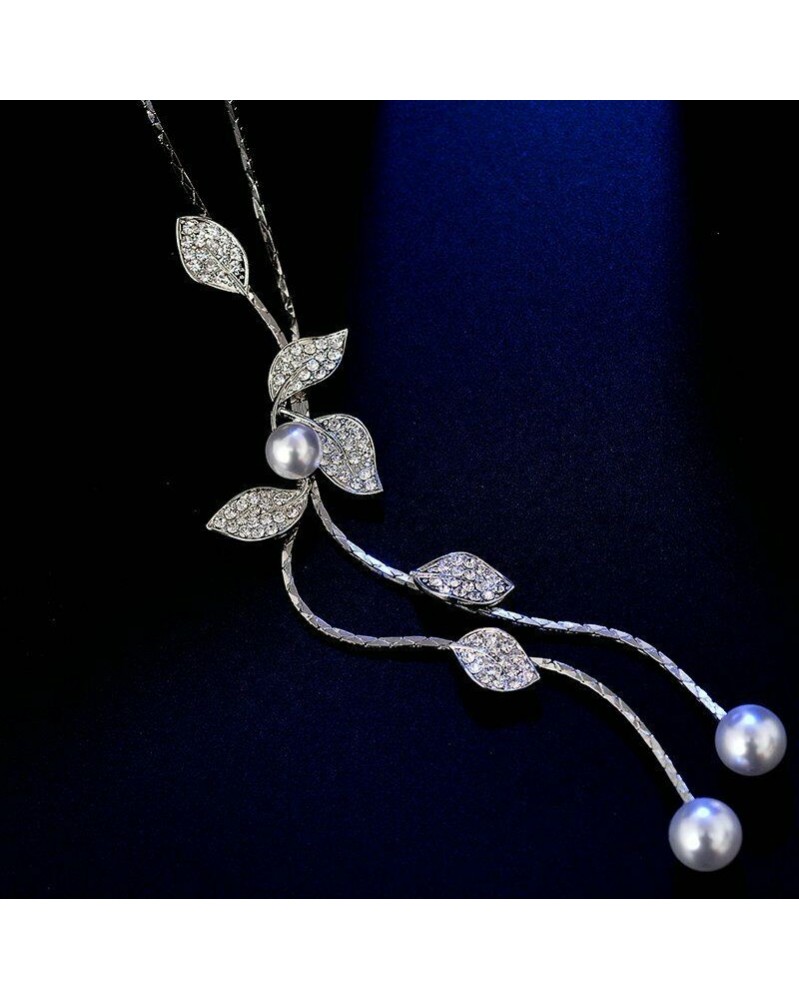 Gyöngylevél - Divat női hosszú virág gyöngy bojt nyaklánc medál pulóver lánc ékszerek