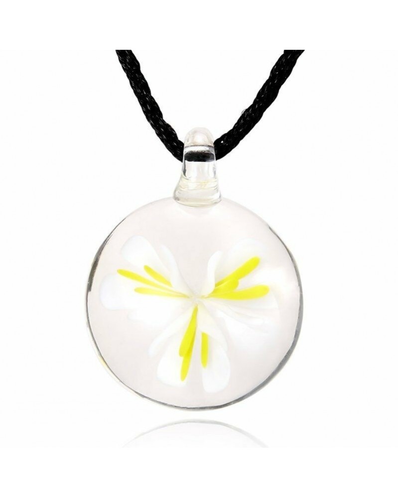 Varázsa fehér virág - Retro női kerek virág Lampwork üveg Murano medál nyaklánc ékszer ajándék