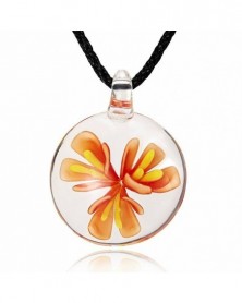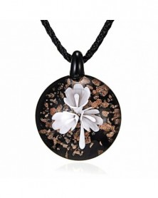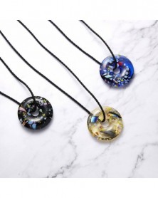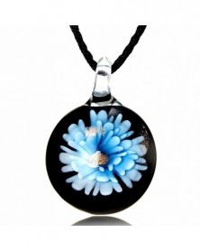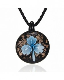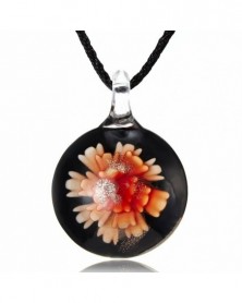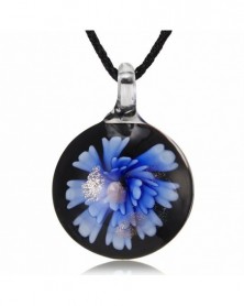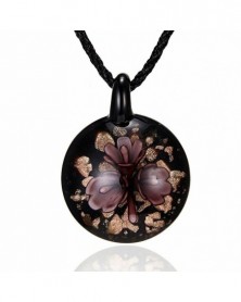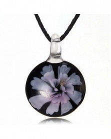 Kerek lila virág - Retro női kerek virág Lampwork üveg Murano medál nyaklánc ékszer ajándék