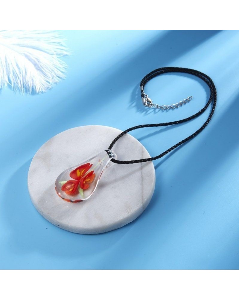 Elegáns narancssárga virág - Divat női ékszerek Murano Lampwork üveg vízcsepp mintás medál nyaklánc