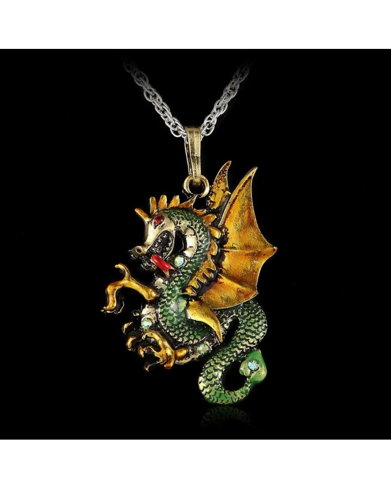 Zöld - Hűvös retro kristály tűz sárkány medál nyaklánc ékszer pulóver hosszú lánc ajándék
