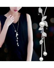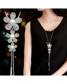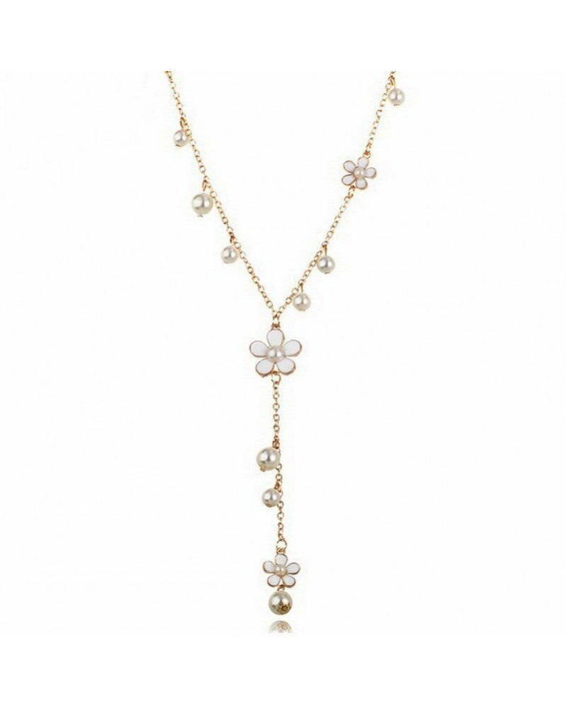 fehér - Divat női sima gyöngy virág nyaklánc medál pulóver lánc ékszer party