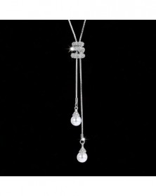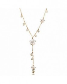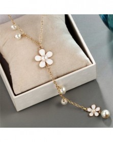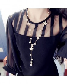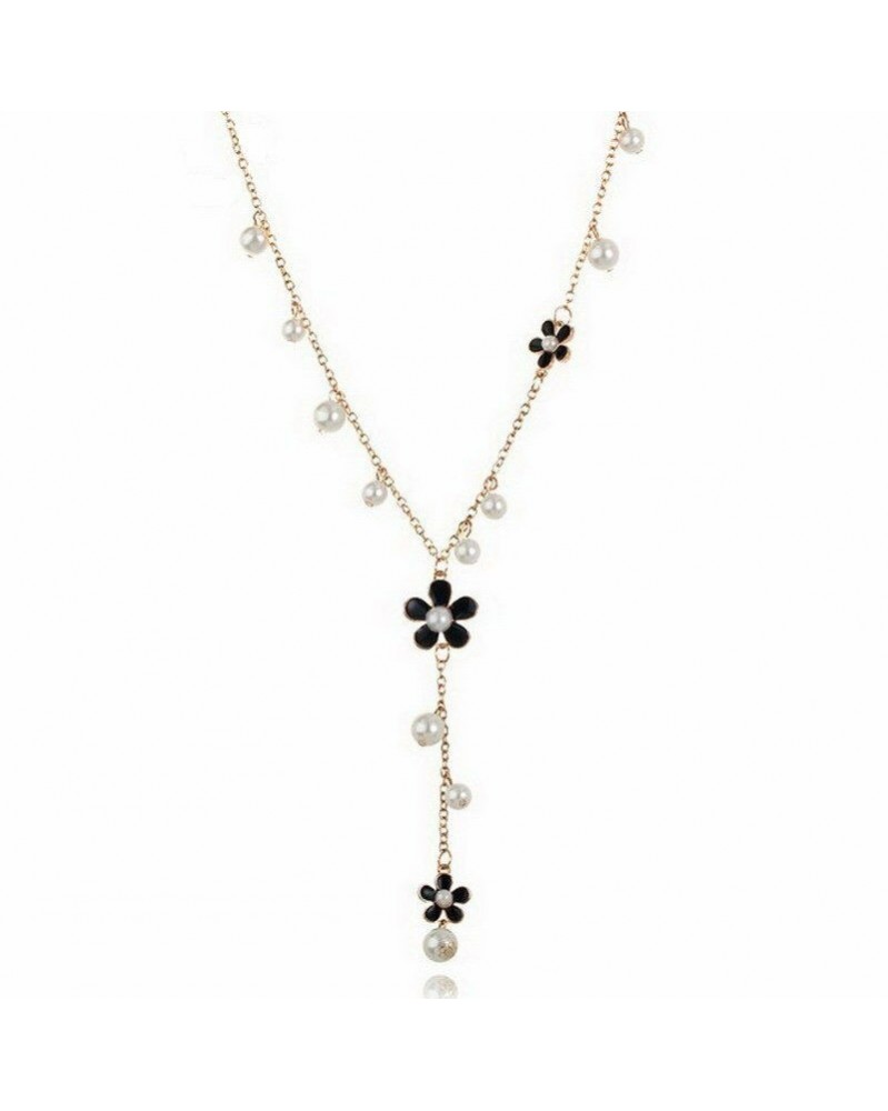 Fekete - Divat női sima gyöngy virág nyaklánc medál pulóver lánc ékszer party