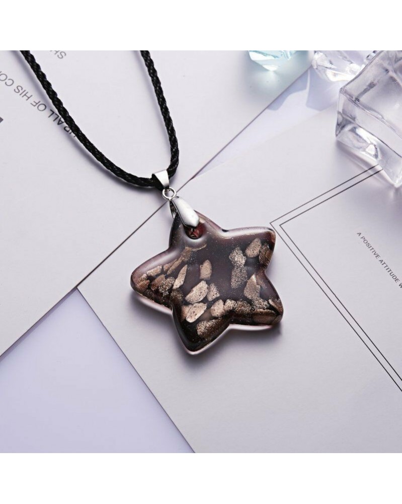 Fekete - Charm Murano Lampwork Glass Star medál nyaklánc fekete bőr női ékszerek