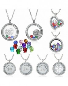 30mm arany kerek - Bájos élő memória úszó családi zseb szív kerek üveg medál nyaklánc
