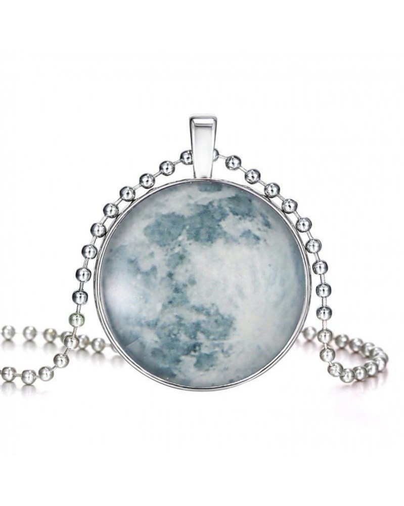 Szürke - Világító izzás a sötét nyakláncban Galaxy Planet Glass Cabochon medál nyaklánc