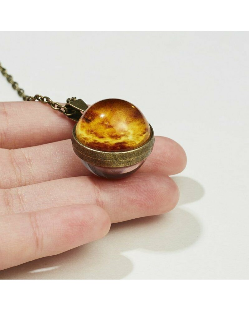 Vénusz - Divat kétoldalas üveggömb nyaklánc Föld bolygó világító ékszer galaxis új