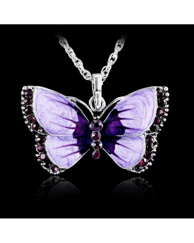 lila - Forró női divat ékszerek zománc pillangó kristály medál nyaklánc ezüst lánc