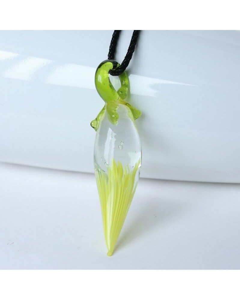 Zöld Chili - Női Lampwork Murano üveg vízcsepp levél virág nyaklánc medál báj ajándék
