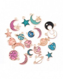 Fém színe: SK049 - 20db Népszerű aranyos zománcozott bevonatú vegyes hold szerelmi bolygó kézzel készített medál kis