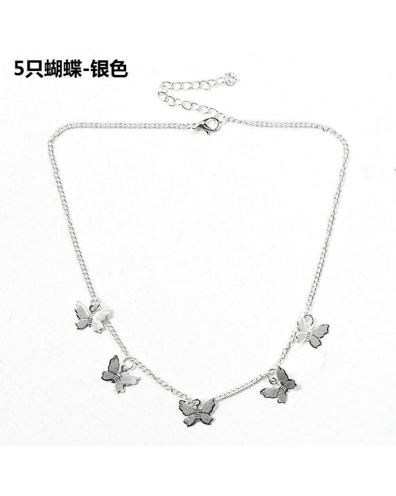 5-pillangó / ezüst - Butterfly Choker Necklace Clavicle Chain Statement Female Chocker Jewellery Ajándék