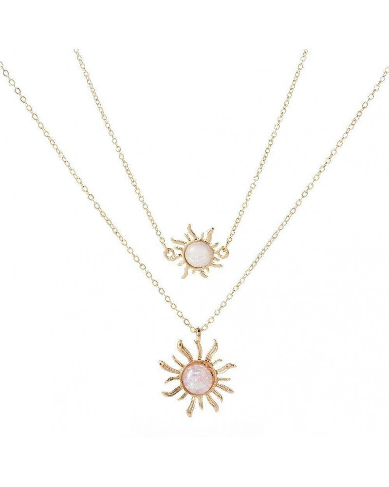 Arany - Boho női többrétegű hosszú láncú napraforgó medál choker nyaklánc ékszer ajándék