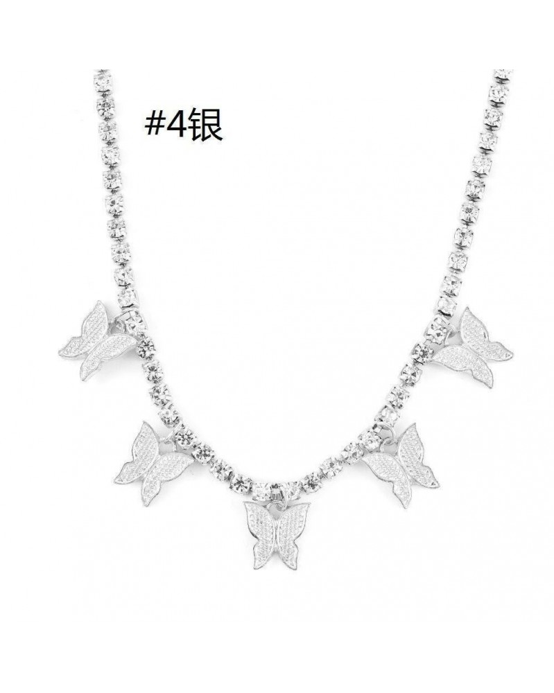 * 4 Ezüst - 2020 divat kristály pillangó nyaklánc medál kulcscsont choker lánc nők Amerikai Egyesült Államok