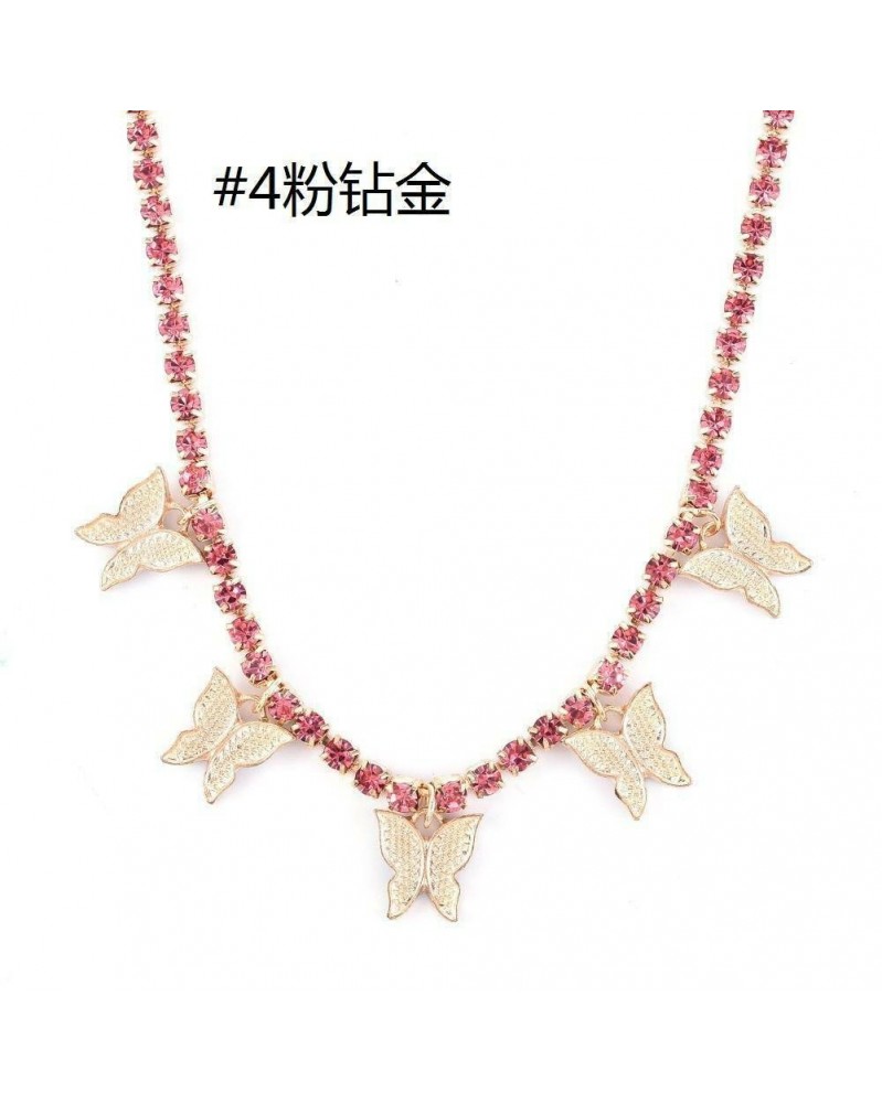 * 4 Rózsaszín - Divat kristály pillangó nyaklánc medál kulcscsont choker lánc nőknek ajándék