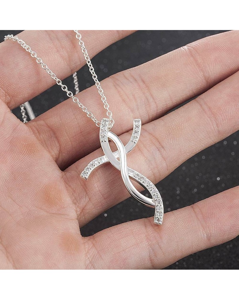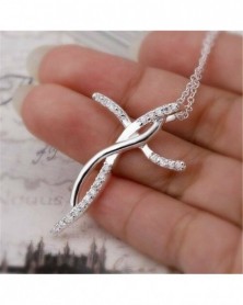 Női 925 ezüst divat varázsa kereszt kristály aranyos nyaklánc esküvői ékszer ajándék