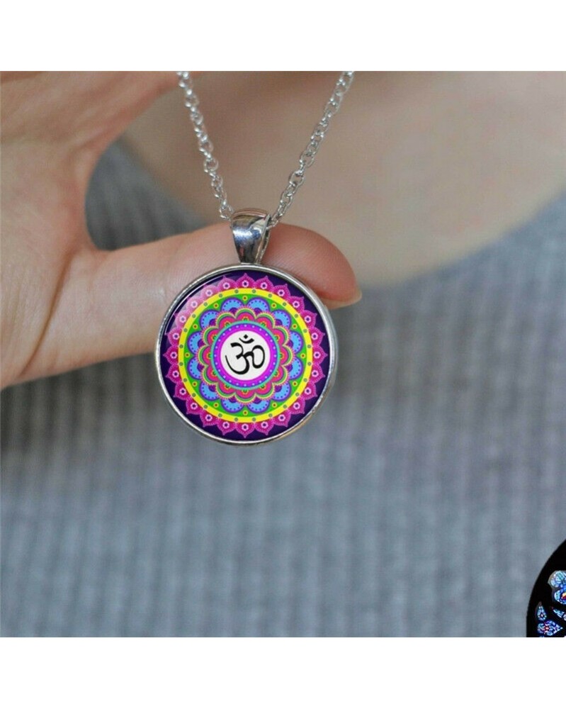 Nincs szín - Om SymbolYoga buddhista fotó Cabochon üveg ezüst lánc medál nyaklánc
