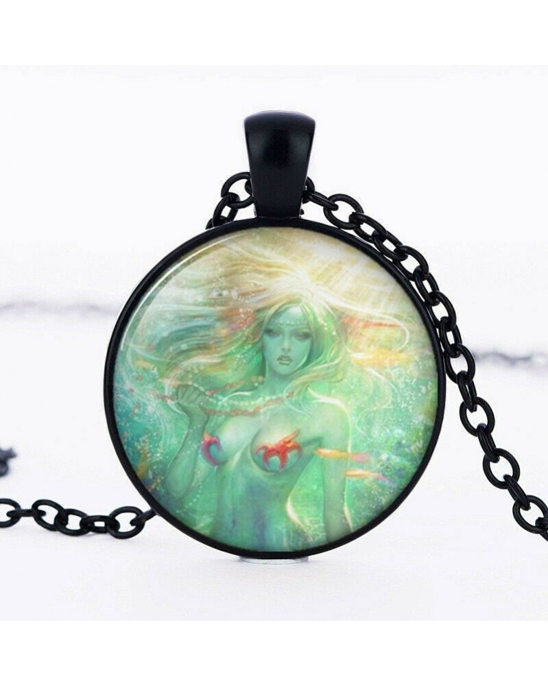 Nincs szín - Vintage sellő Photo Cabochon üveg fekete lánc medál nyaklánc ékszerek
