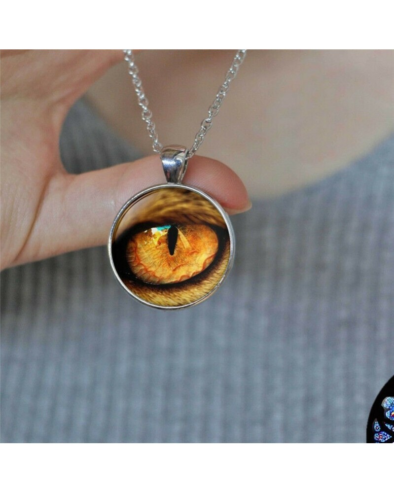 Nincs szín - Vintage sárkány szem fotó Cabochon üveg ezüst lánc medál nyaklánc ékszerek