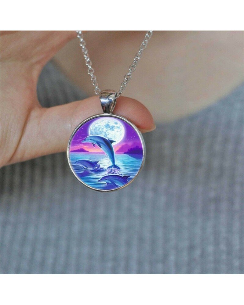 Nincs szín - Delfinek ugranak a Holdba Photo Cabochon üveg ezüst lánc medál nyaklánc