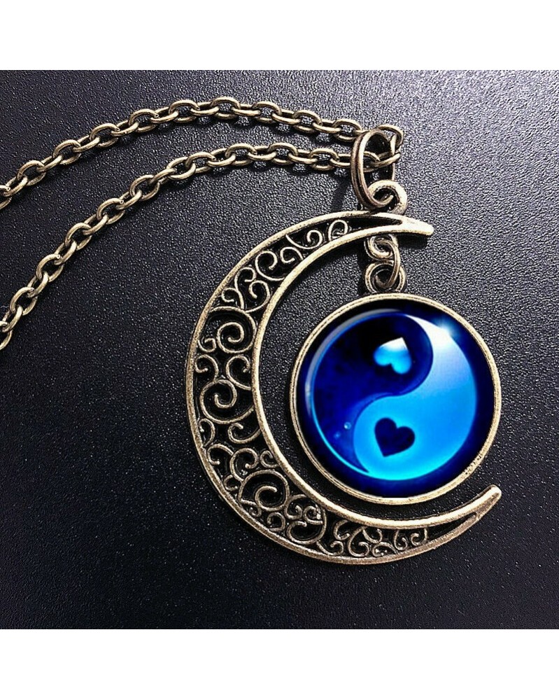 Nincs szín - kék Ying yang art medál choker ékszerek bronz hold nyaklánc nőknek Dres