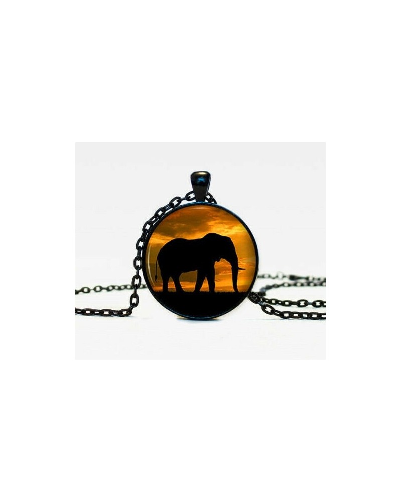 Nincs szín - Elefánt ékszer művészeti fotó Cabochon üveg fekete medál lánc nyaklánc ékszer