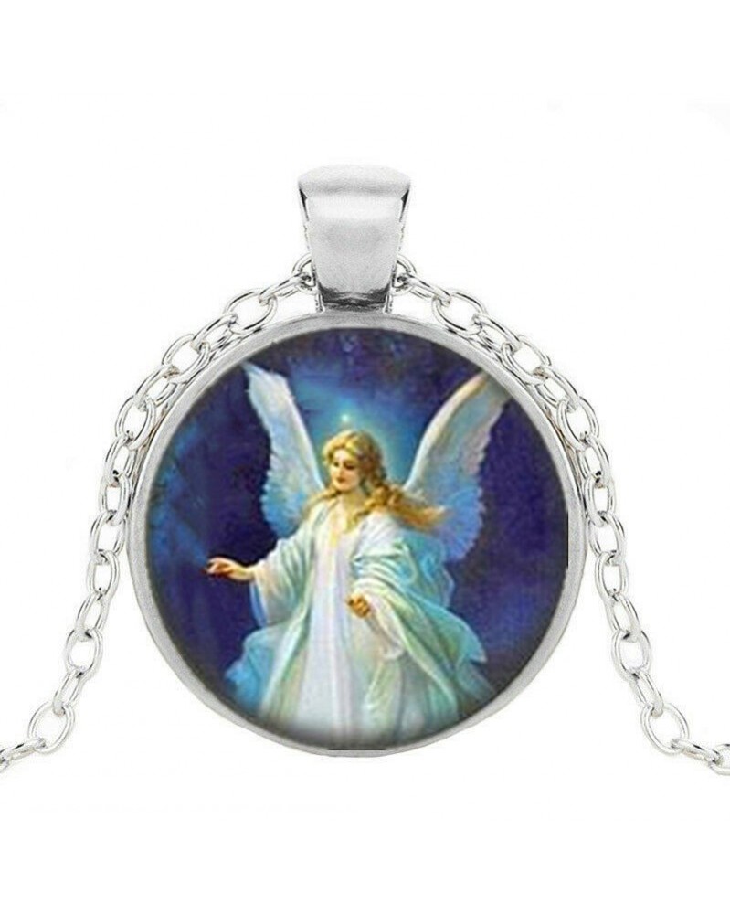 Nincs szín - Guardian Angel Art Photo Cabochon üveg ezüst medál lánc nyaklánc ékszerek