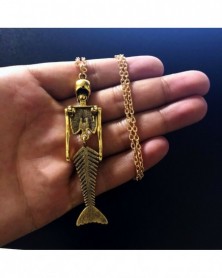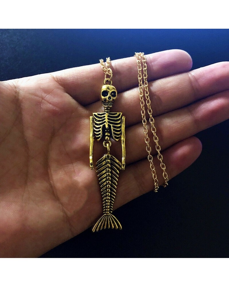 Nincs szín - Vintage sellő test koponya csontváz alakú medál antik antik arany nyaklánc