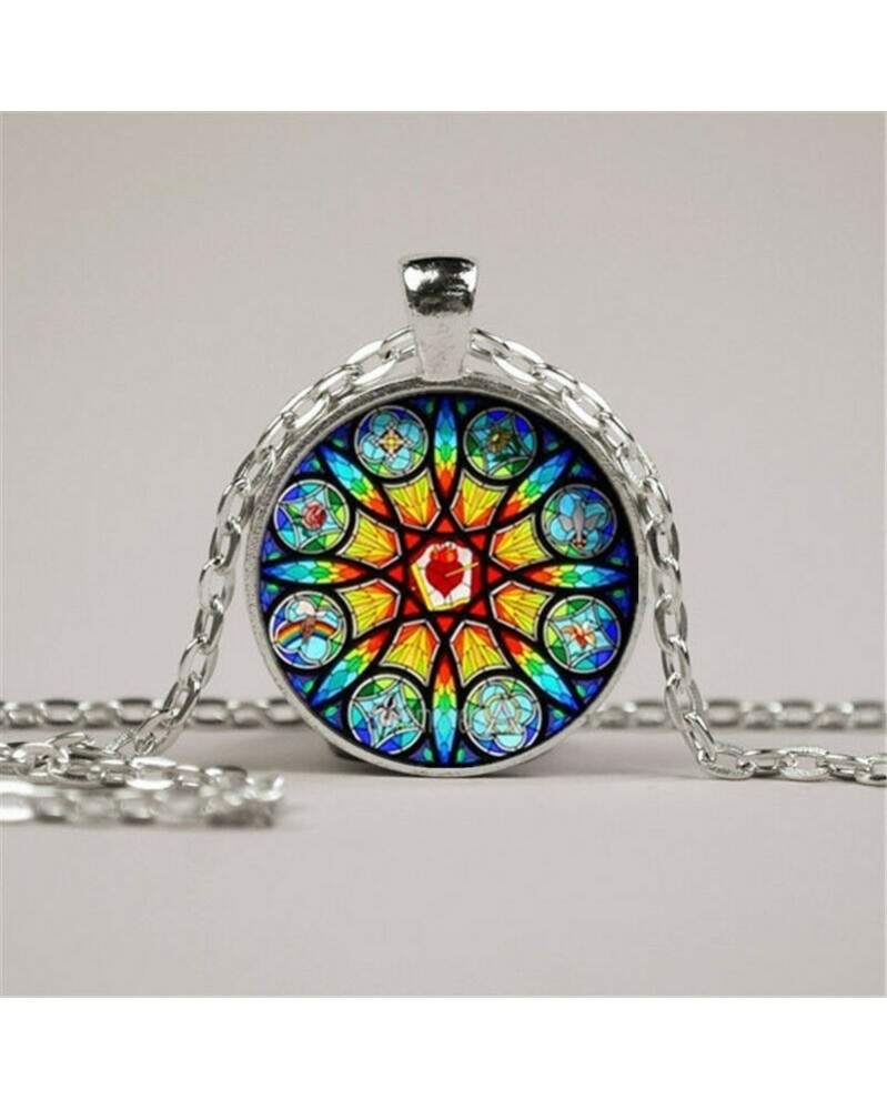 Nincs szín - Vintage üvegfoltos templom fotó Cabochon üveg ezüst lánc medál nyaklánc