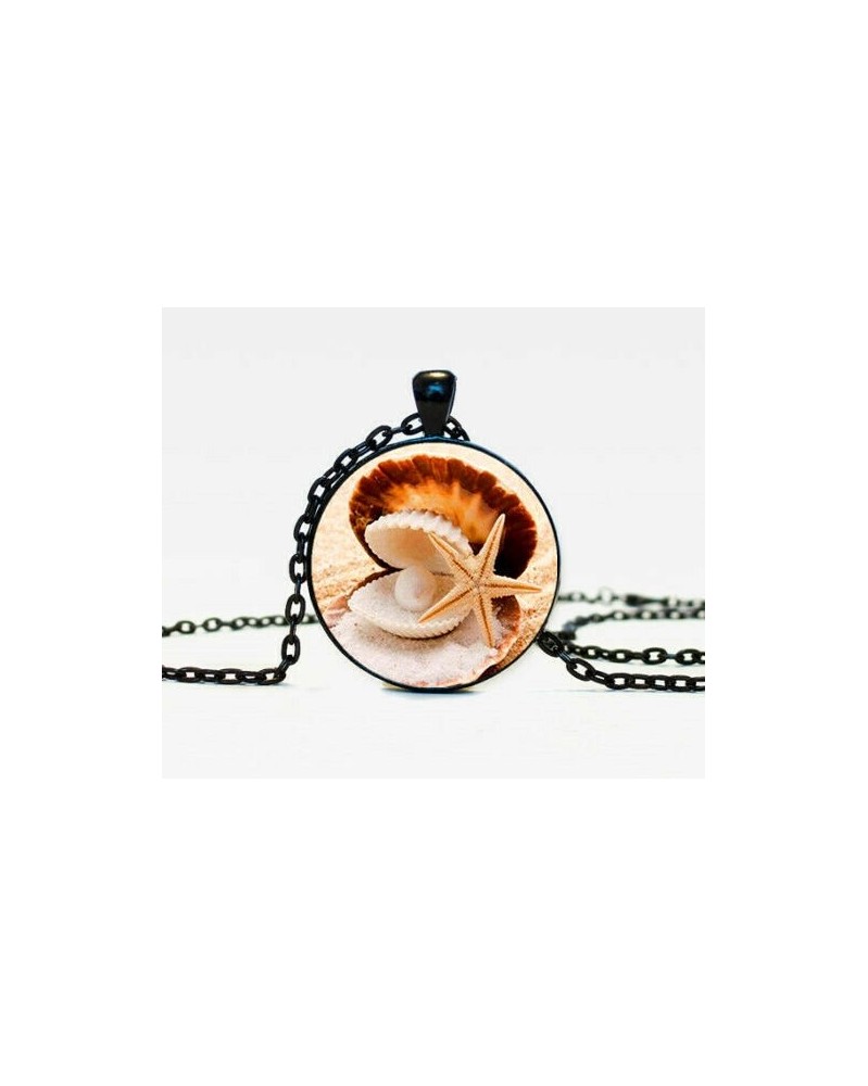 Nincs szín - Vintage Starfish shell Photo Cabochon üveg fekete lánc medál nyaklánc