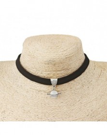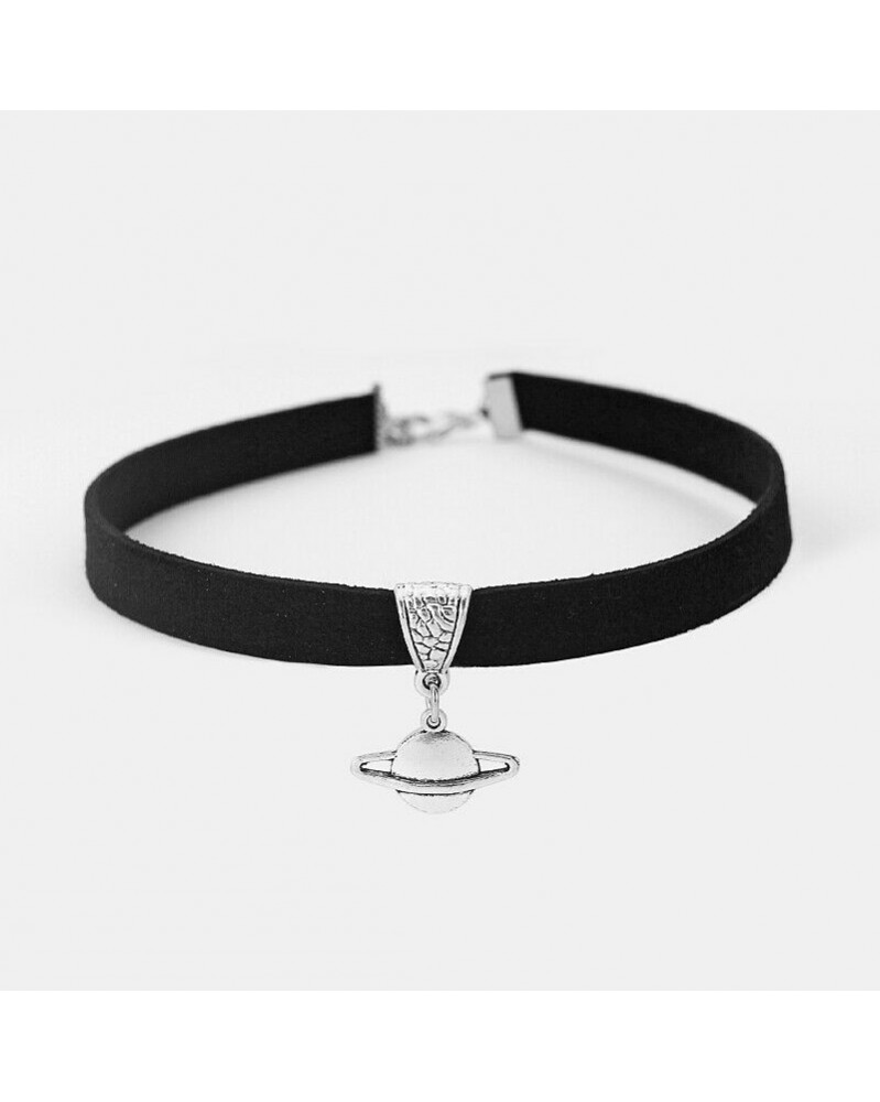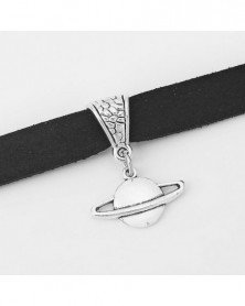 Nincs szín - Fekete 10 mm-es lapos műbőr zsinór Saturn Planet Charm 13 " -os choker nyaklánc