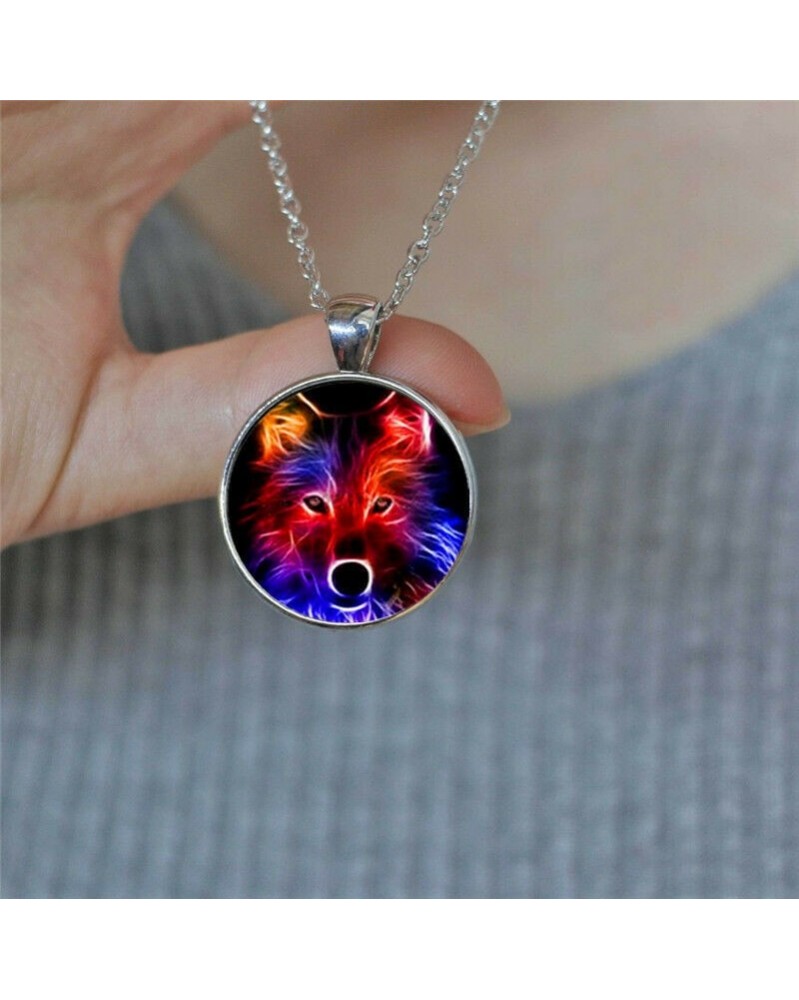 Nincs szín - Vintage szép róka bolygó Photo Cabochon üveg ezüst lánc medál nyaklánc