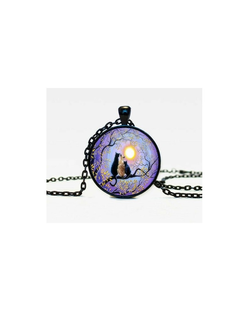 Nincs szín - Vintage rajzfilm macska art fotó Cabochon üveg fekete lánc medál nyaklánc