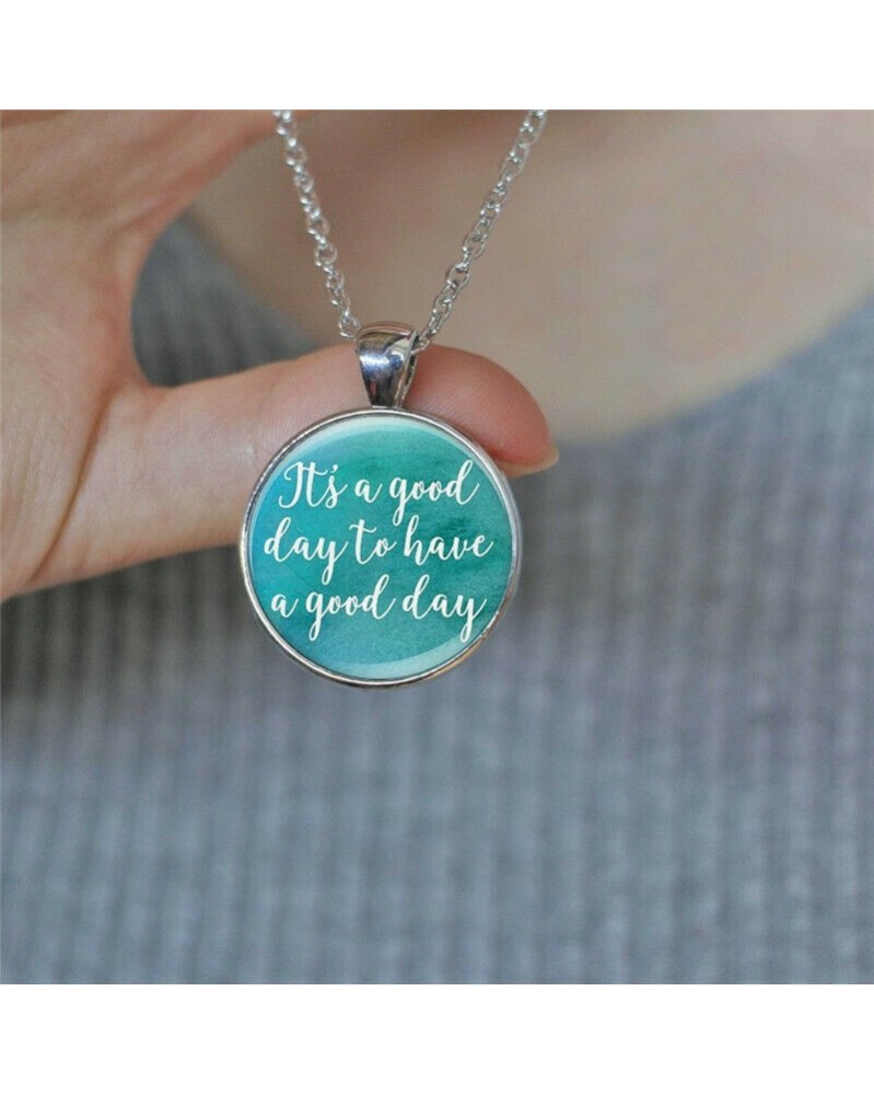 Nincs szín - Vintage inspiráló ápolási fotó Cabochon üveg ezüst lánc medál nyaklánc