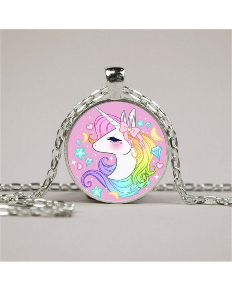 Nincs szín - Vintage rajzfilm ló művészet fotó Cabochon üveg ezüst lánc medál nyaklánc