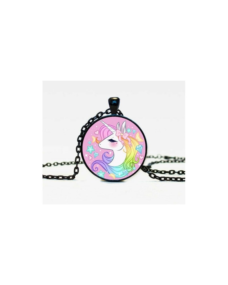 Nincs szín - Vintage rajzfilm ló art fotó Cabochon üveg fekete lánc medál nyaklánc