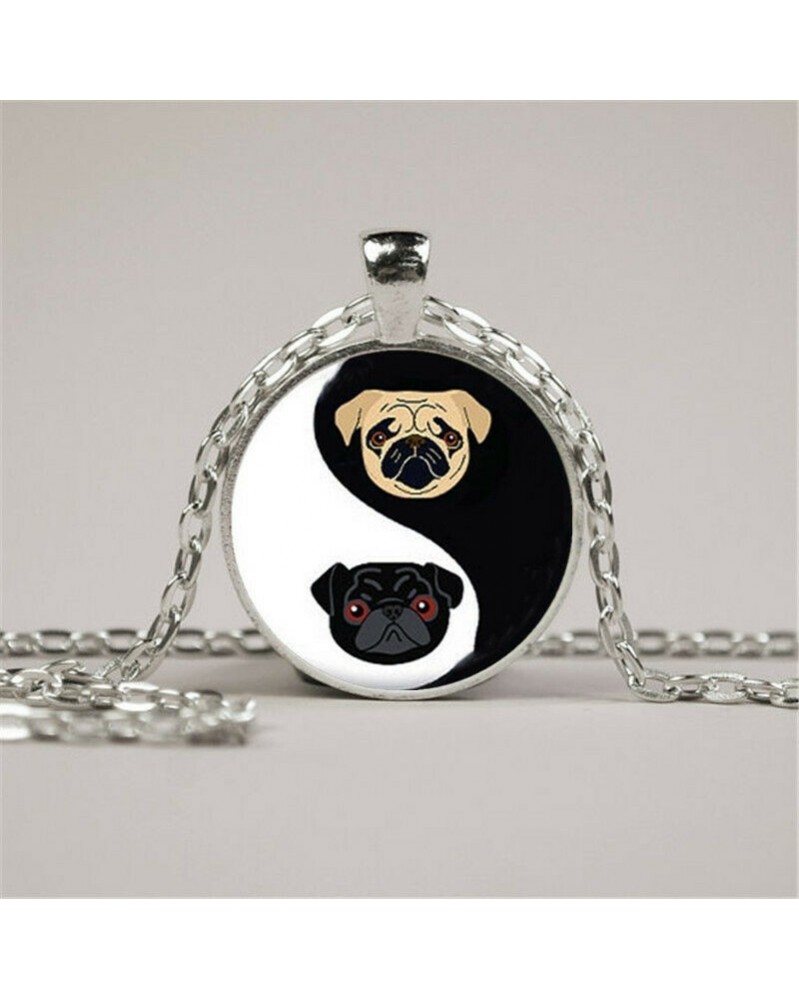 Nincs szín - Vintage Yin Yang mopsz Bulldog fotó Cabochon üveg ezüst lánc medál nyaklánc