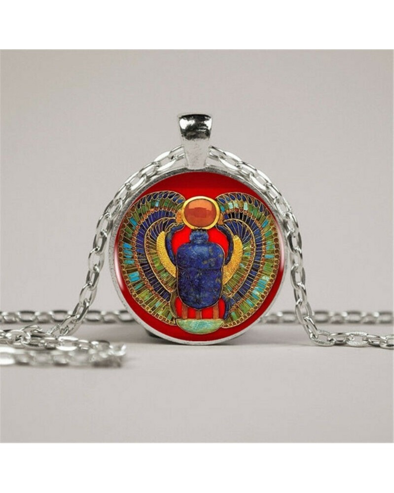 Nincs szín - Vintage egyiptomi Scarab Photo Cabochon üveg ezüst lánc medál nyaklánc